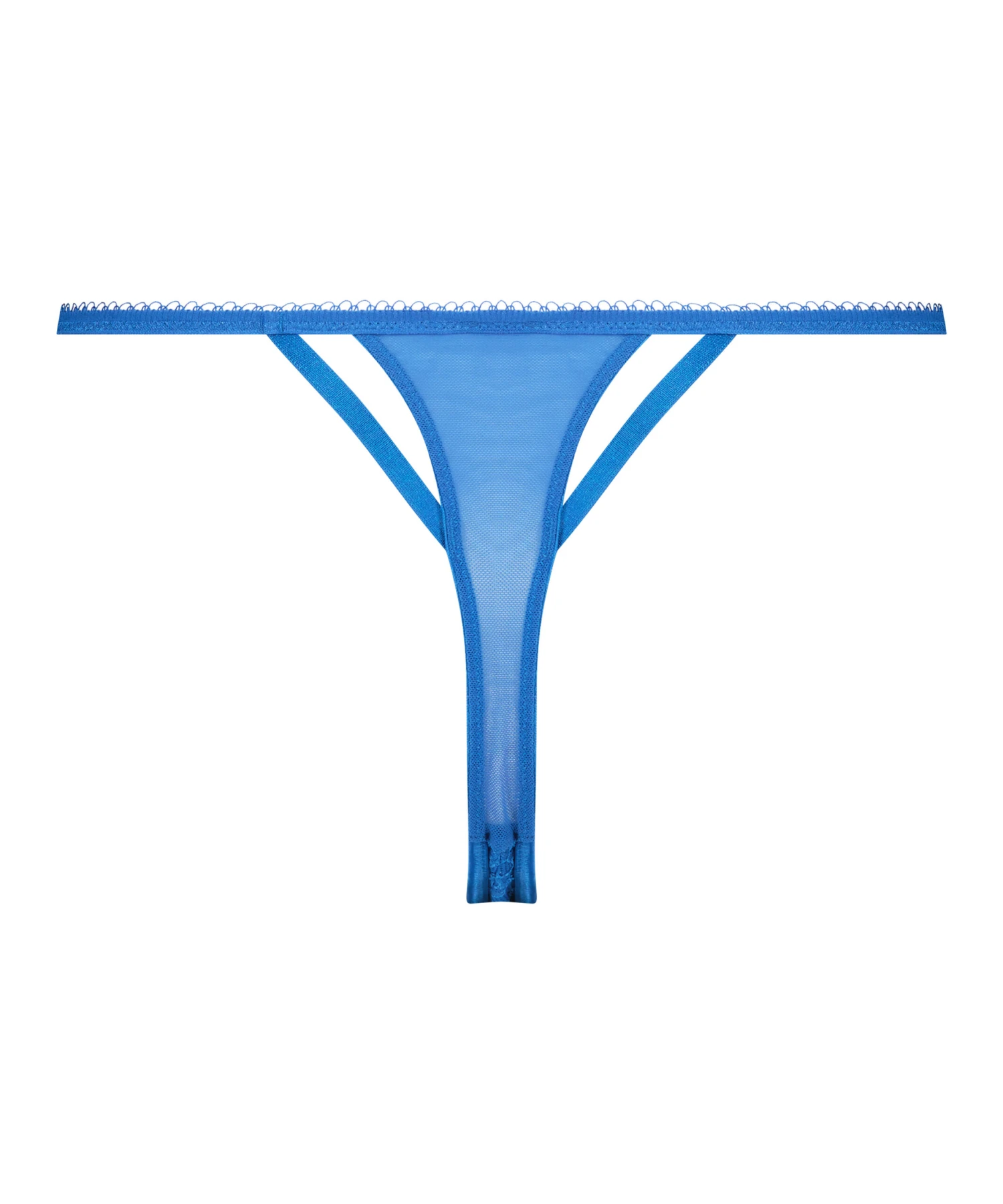 This sexy thong features semi-transparent lace and strappy details. From our sexy Private collection.