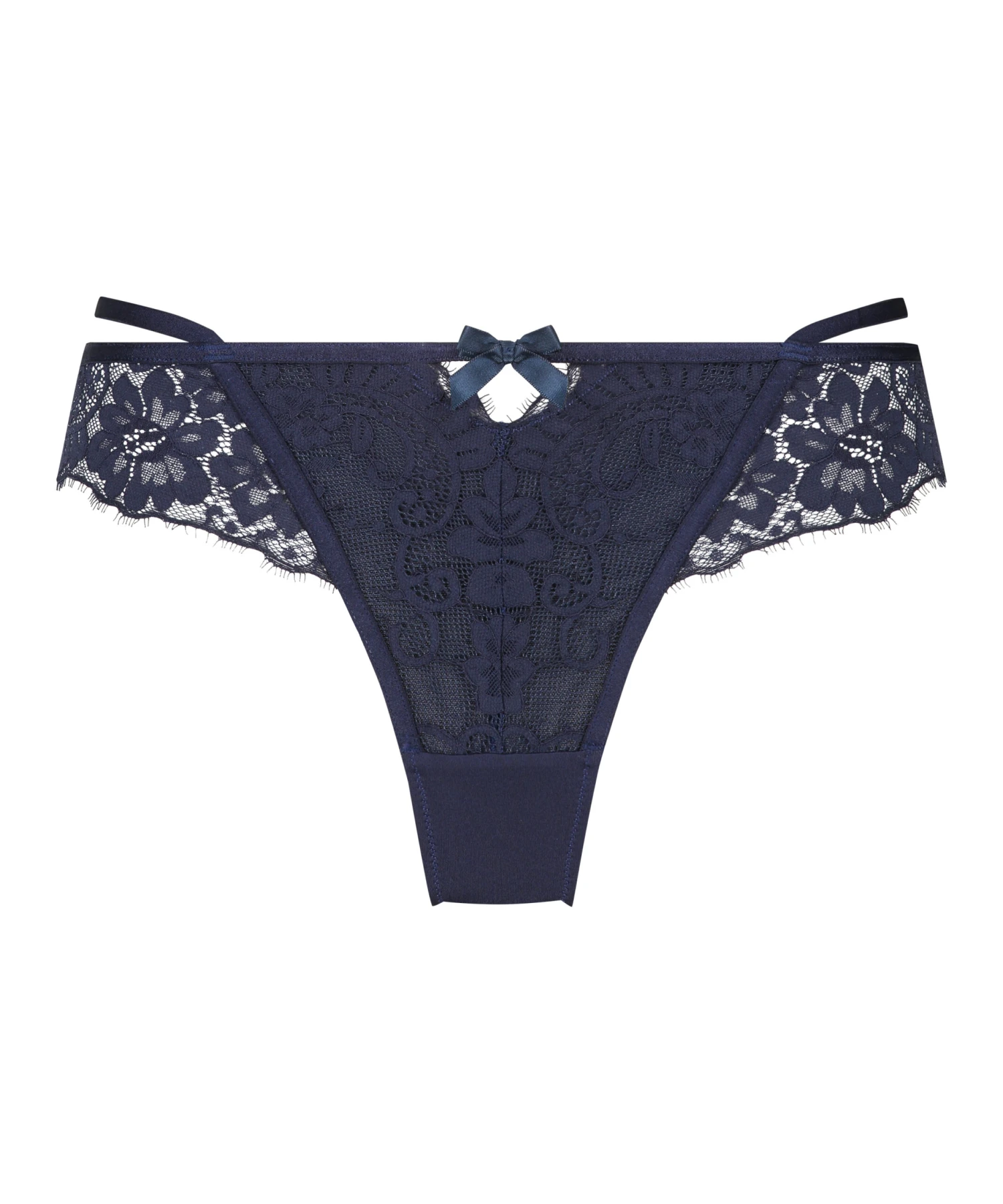 Feel good in this stunning thong! With lots of romantic lace on the front and back, along with elegant strappy and cut-out details. The high leg look is going to make you feel at your best. Completed with a cute bow to tie the look together. Pair with the matching bra!