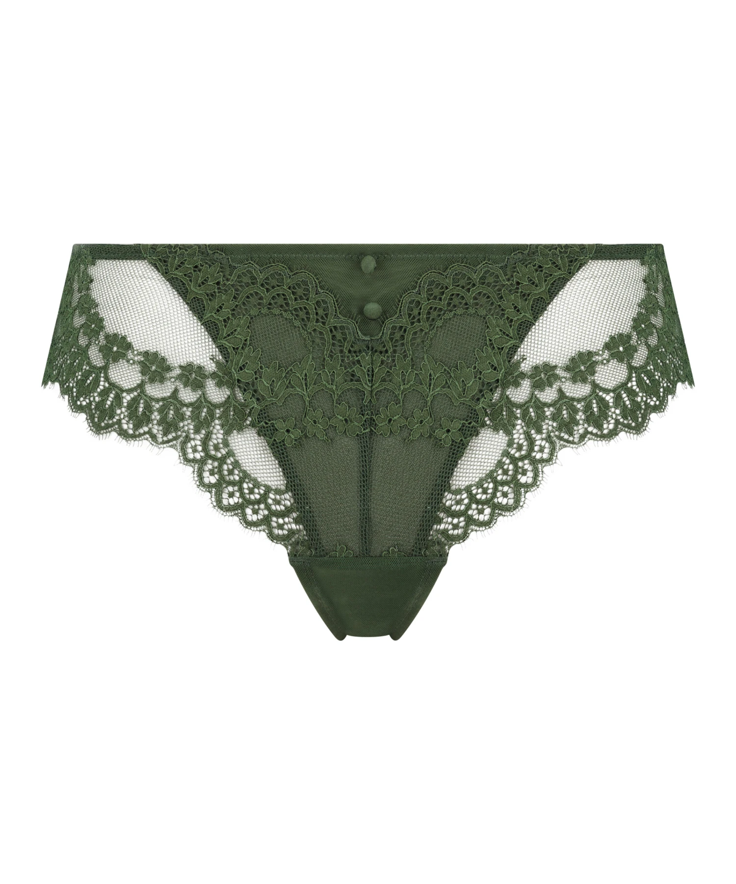 These Brazilian knickers are super sexy! They feature a lot of lace, as well as mesh on the back. Combine with matching items for a complete look!