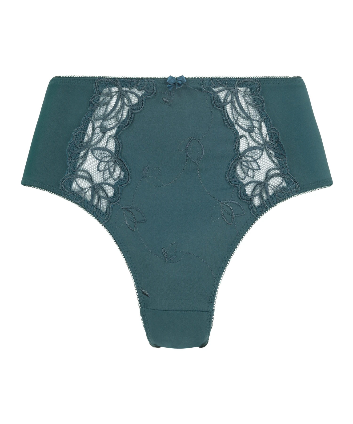 These high-knickers are made from supple flowing fabric for a lovely fit and are decorated with floral embroidery and a small bow on the front.
