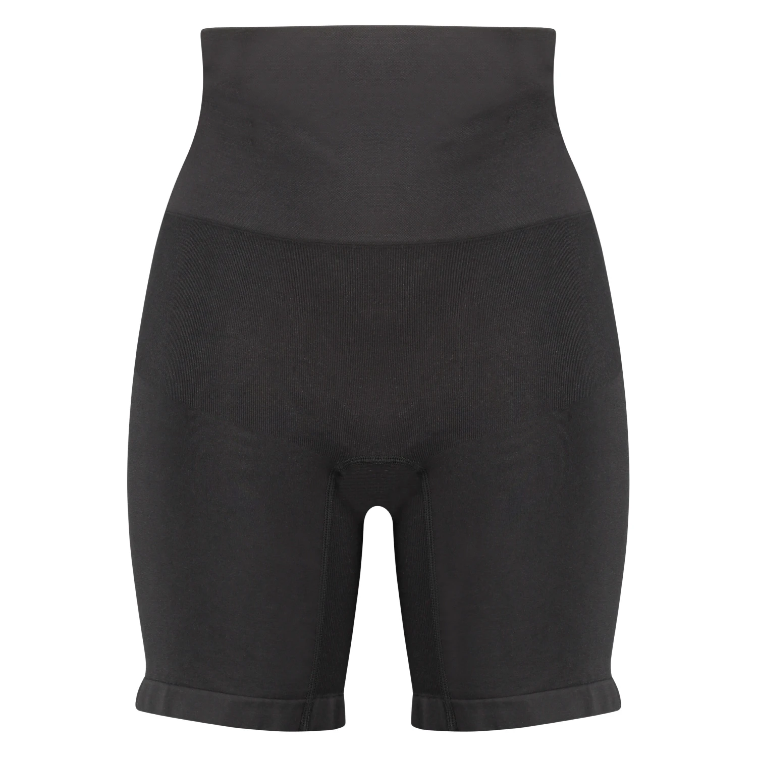 Corrective high trousers, with pipes and high in the waist, creating a remedial effect on the abdomen, hip and thigh. The inside stitching ensures invisibility under clothing. Visible results