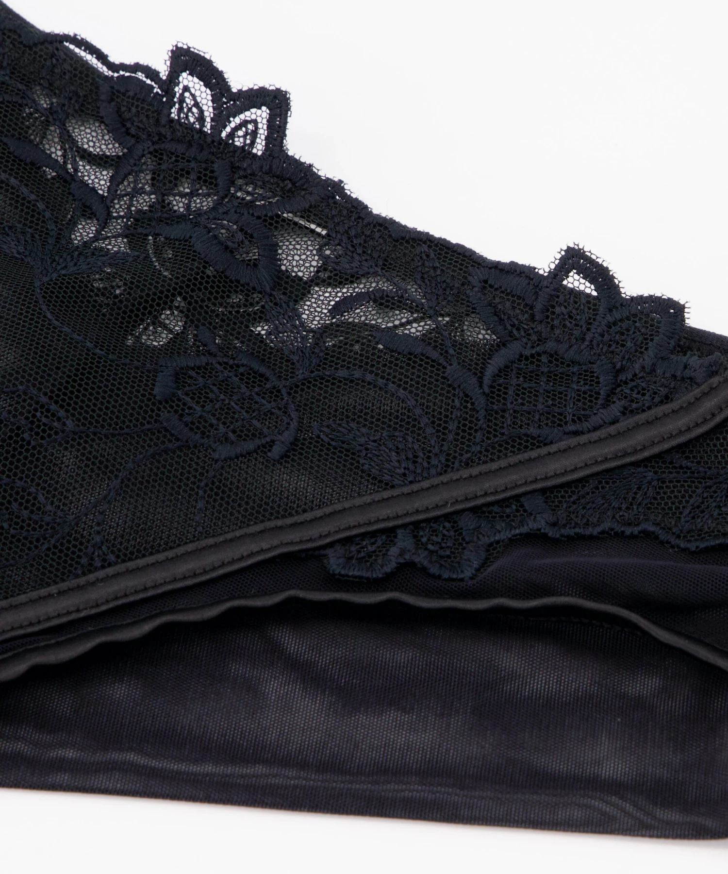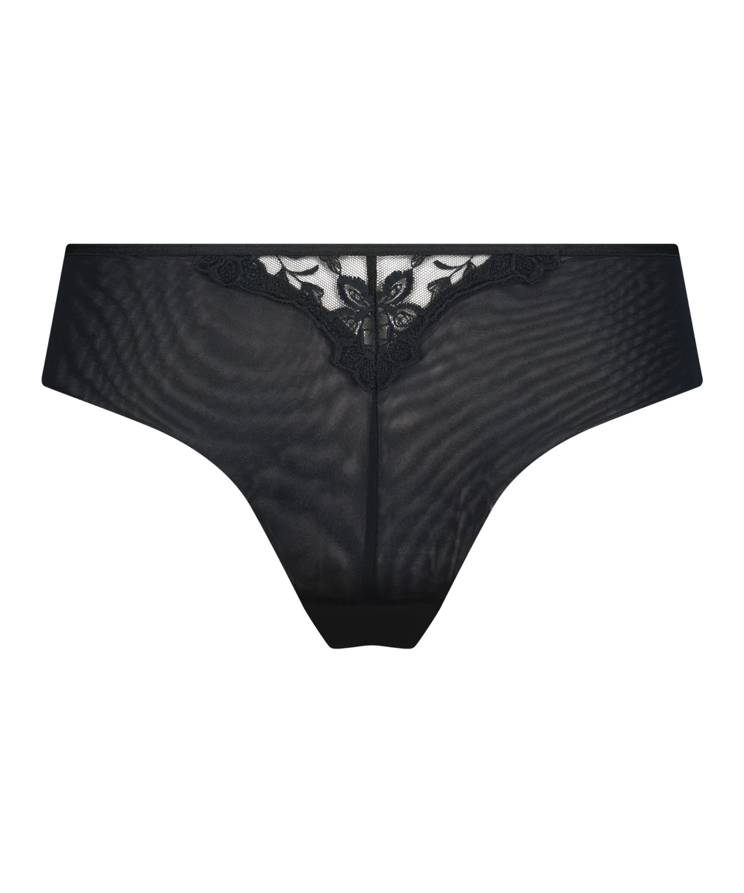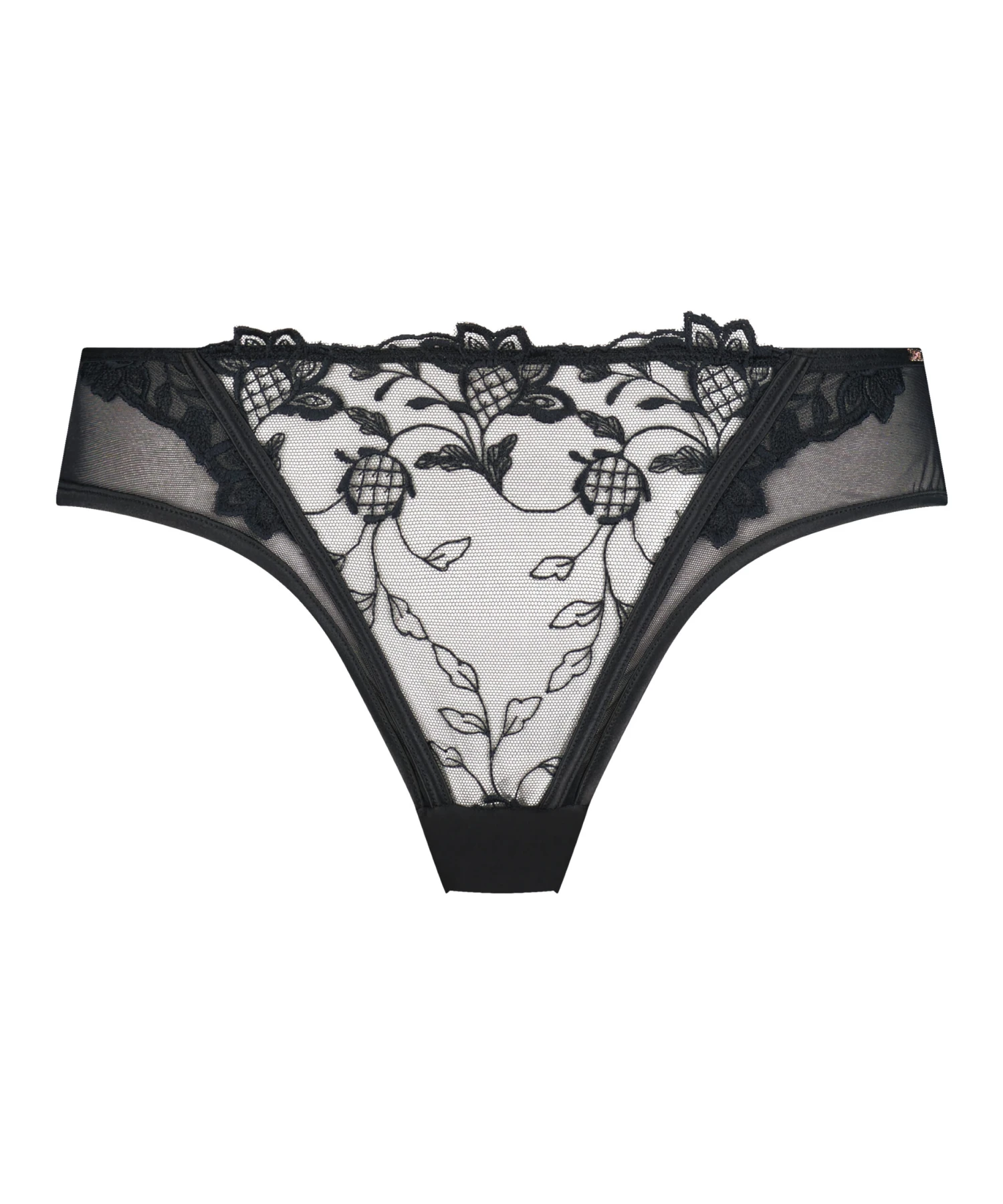 Feel elegant in this stunning brazilian! With an all-over semi-transparent sexy look with embroiders and lace. Combine with the matching bra to finish the set! Part of our Noir collection.