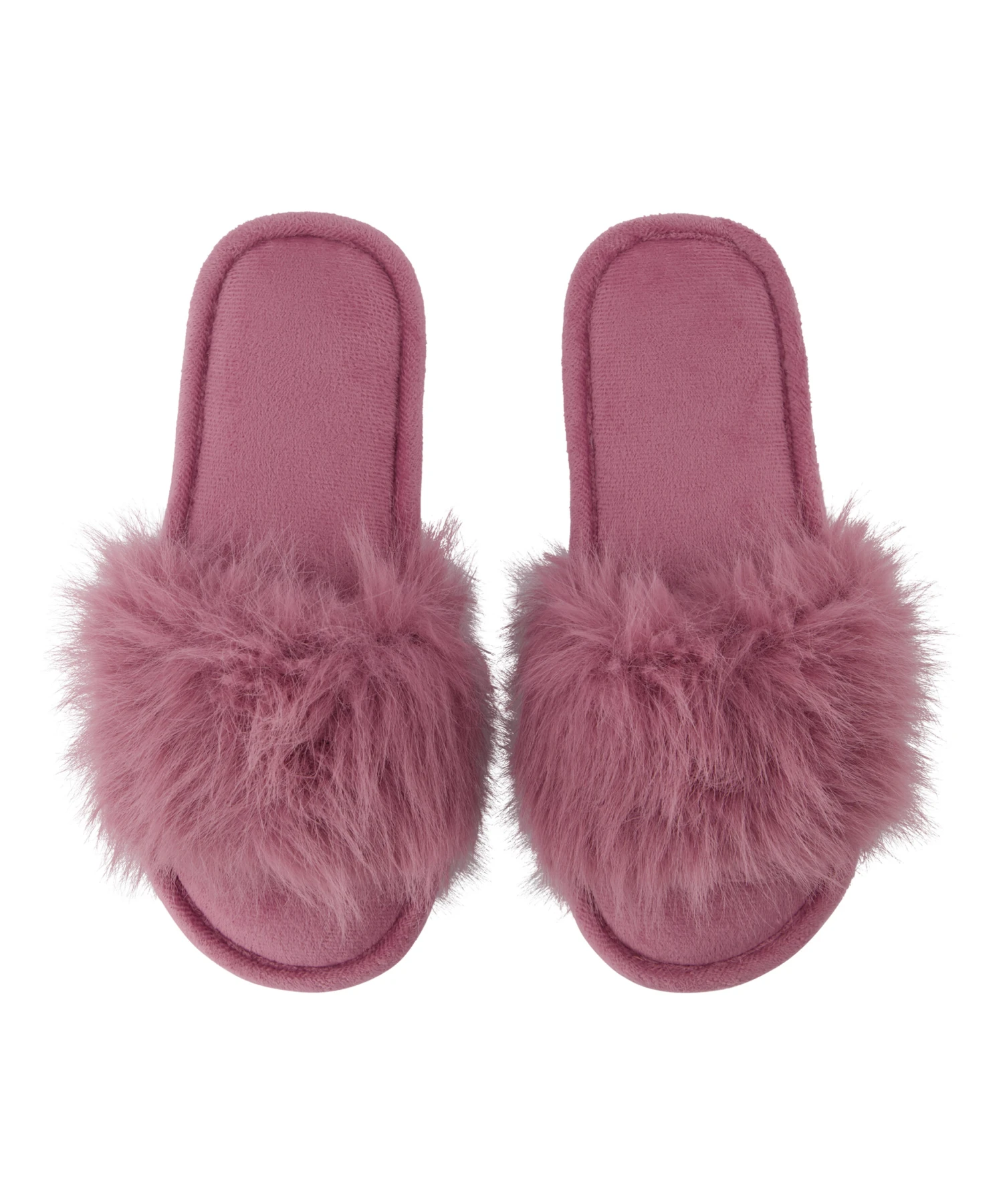 These slippers will keep your feet warm and comfortable. With fun fake fur on the front band. Pair them with one of our nightwear sets!