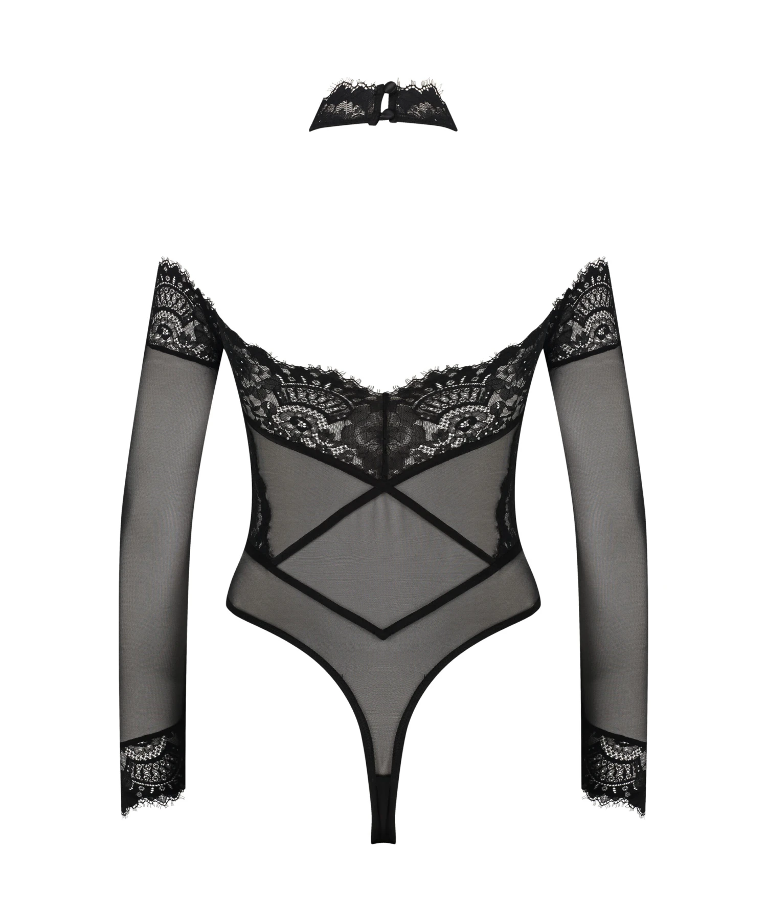 Look at this sexy body! It has mesh-details and lace to create a semi-transparent look. The back is half open and it has long sleeves. Pair with your favourite items.