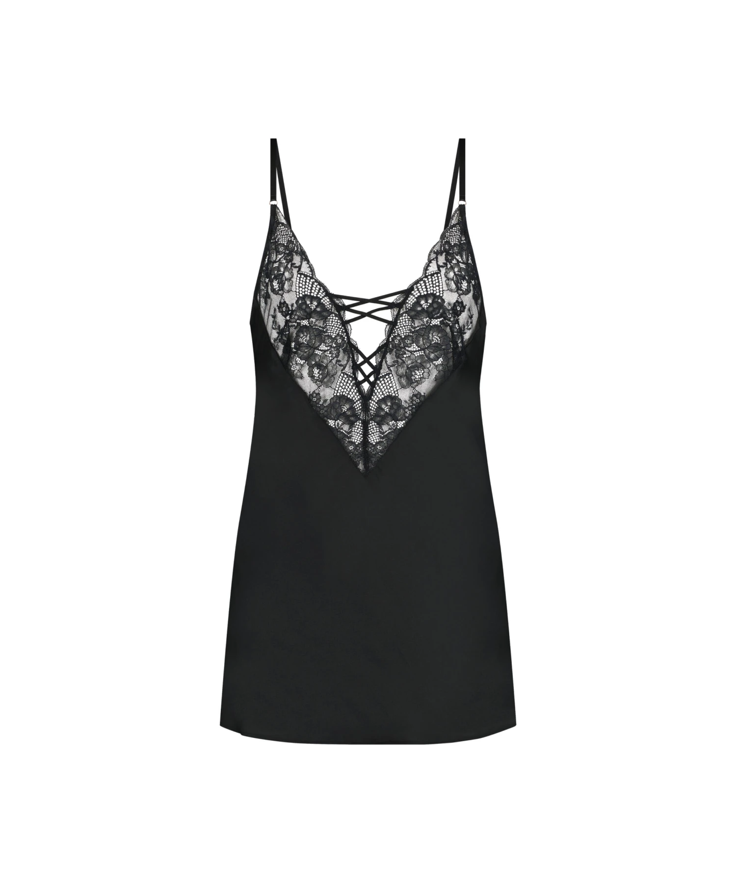 Look stunning in this slip dress! With a satin look and feel, decorated with floral lace and strappy details. Match with a kimono!