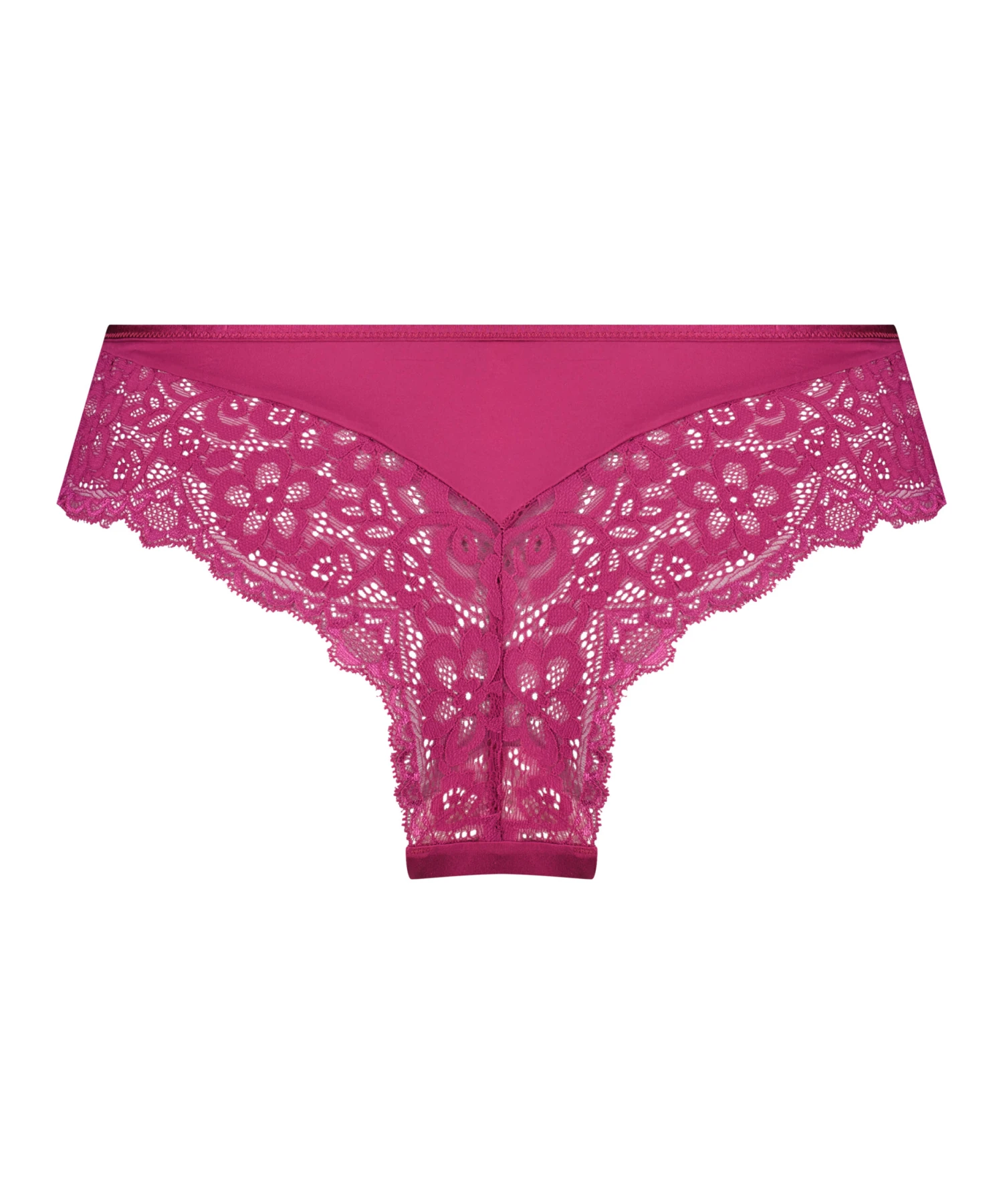 These Brazilian knickers are finished with all-over lace for a super sexy look. A small bow in the middle adds a finishing touch. Combine with the matching bra for a complete look.
