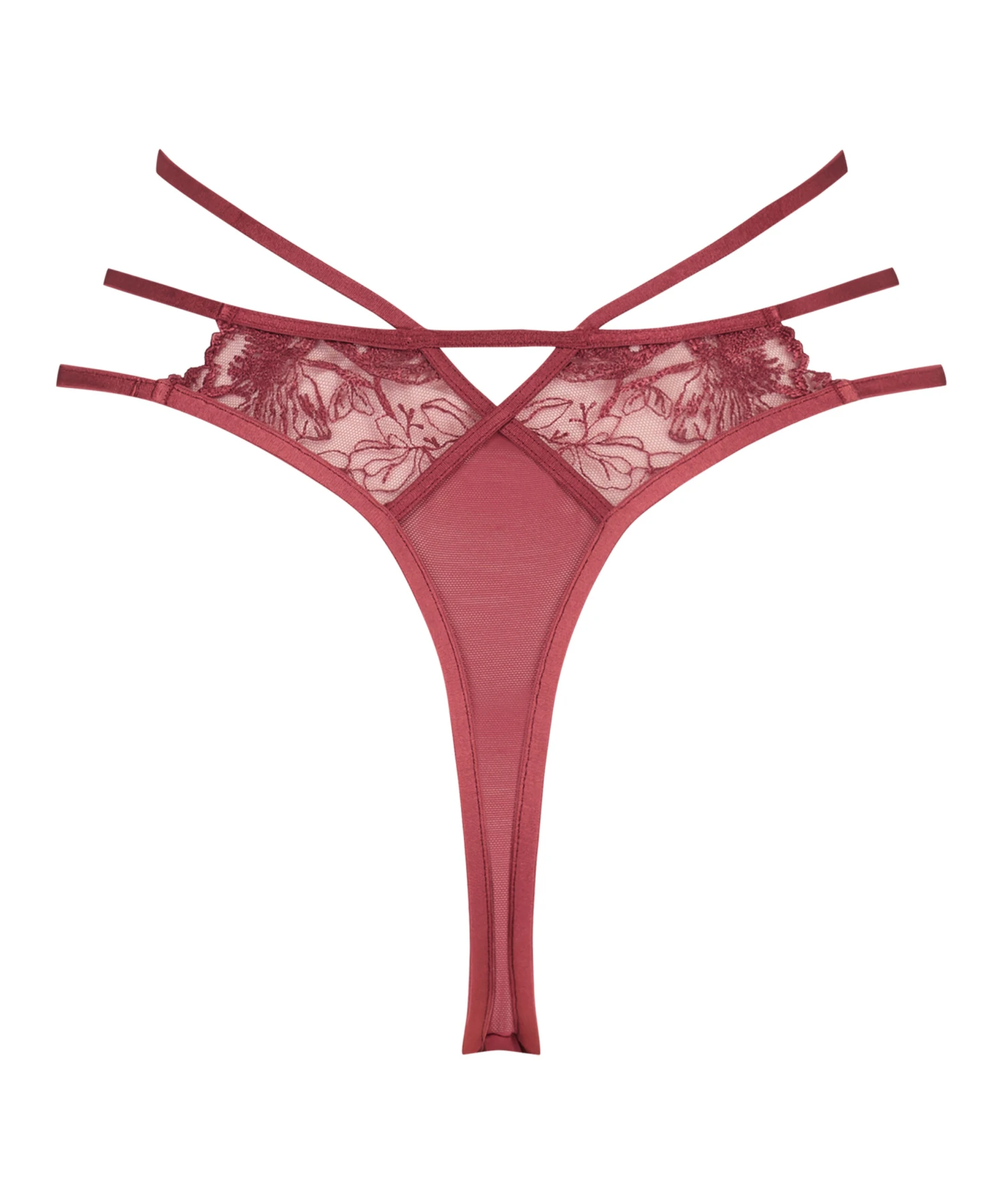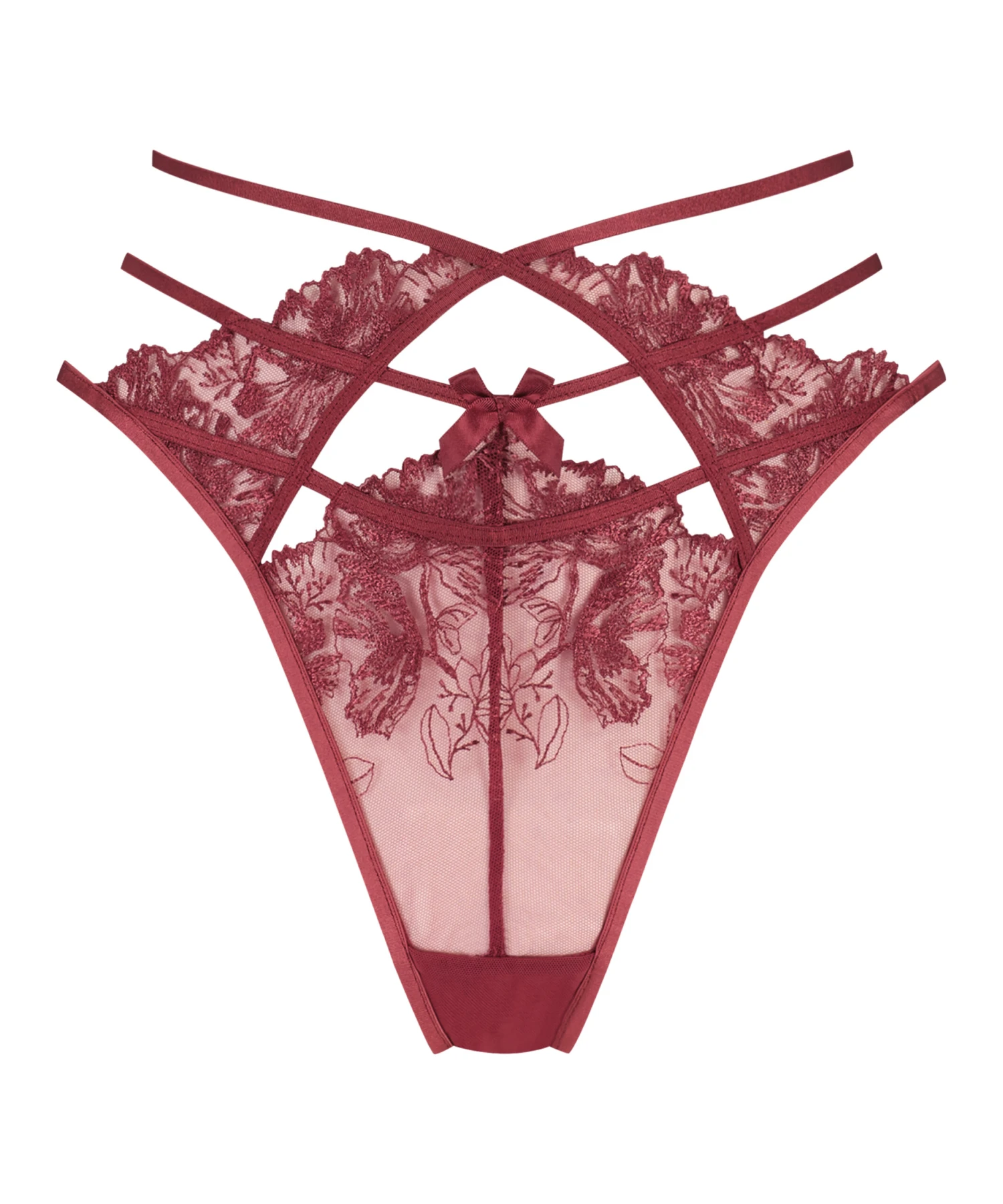The sophistication of beautiful embroidery meets strappy detailing for an unforgettable look. Strap in, dim the lights, and get ready to feel stunning. Combine this magical thong with the matching bralette to elevate your lingerie game.