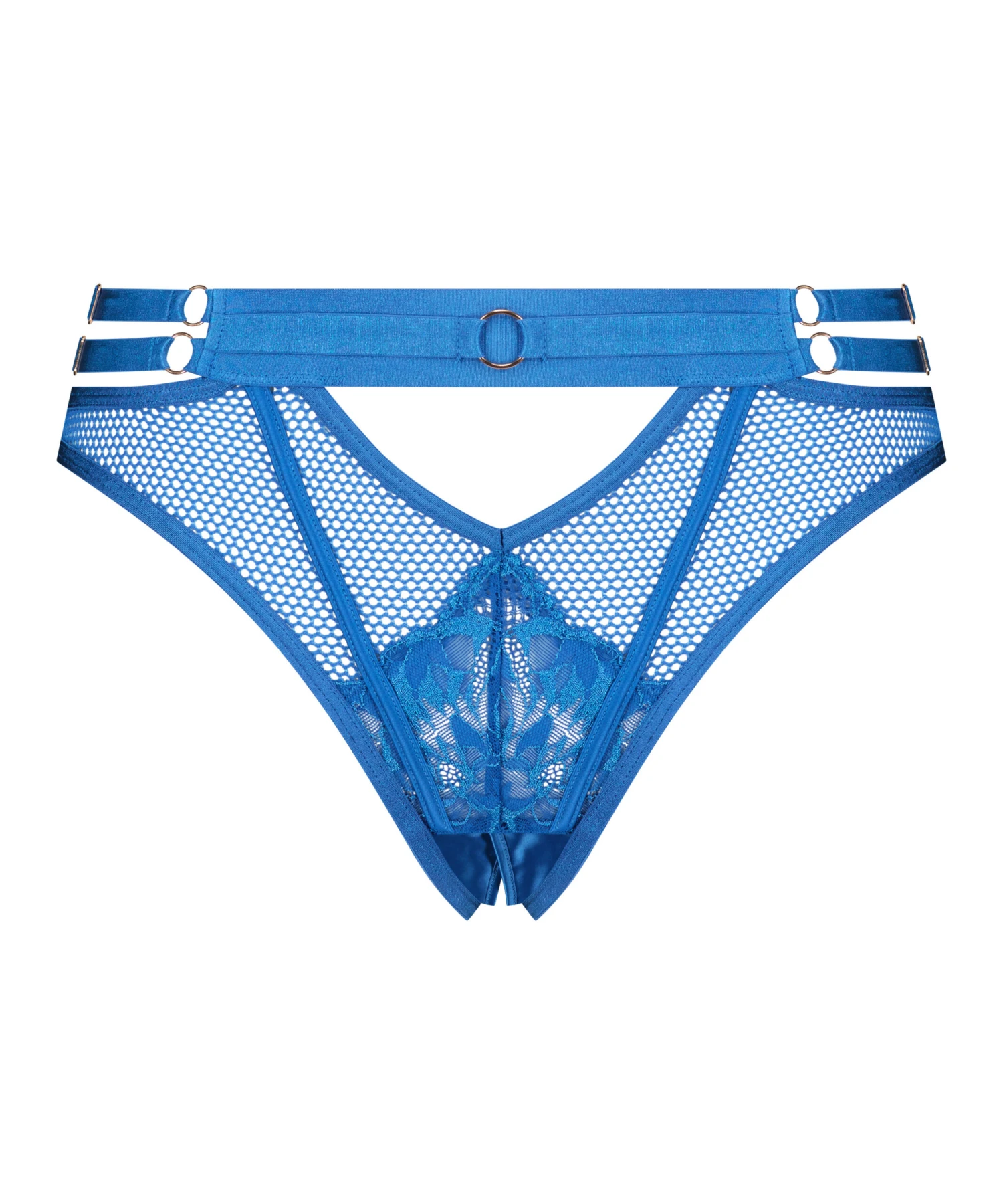 Create a spicy look in these Brazilian knickers! They have lace, straps and cut-out details. The Brazilian knickers also have an open crotch and rear section, so super daring! Combine with matching items. Part of the Private Collection.