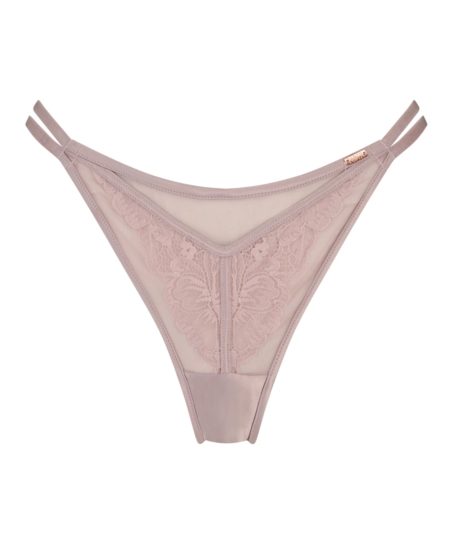 Feel good in this sexy thong! It has lace and mesh details on the front, along with strappy details on the hips. Complete the set with the matching Noir collection bra!