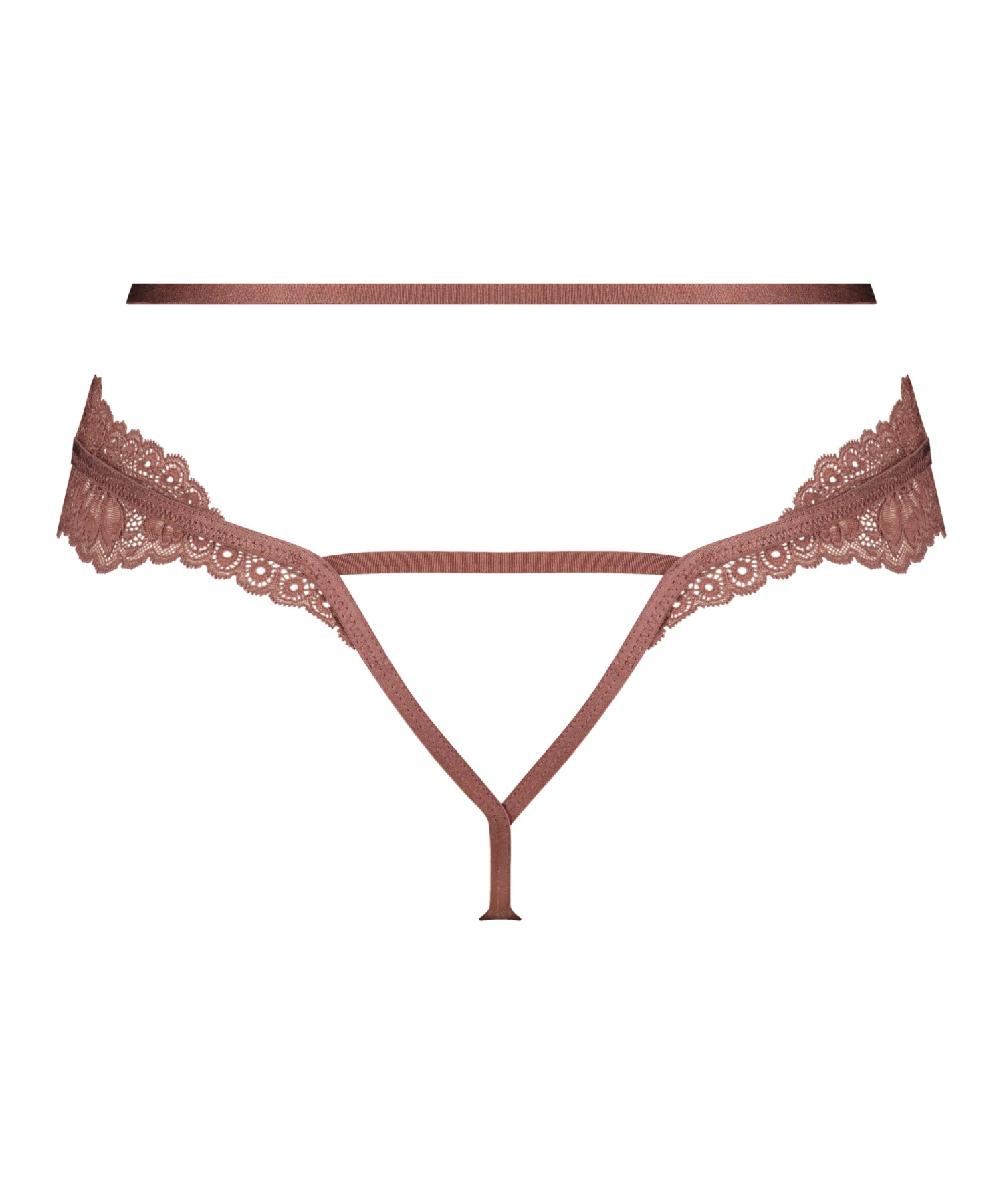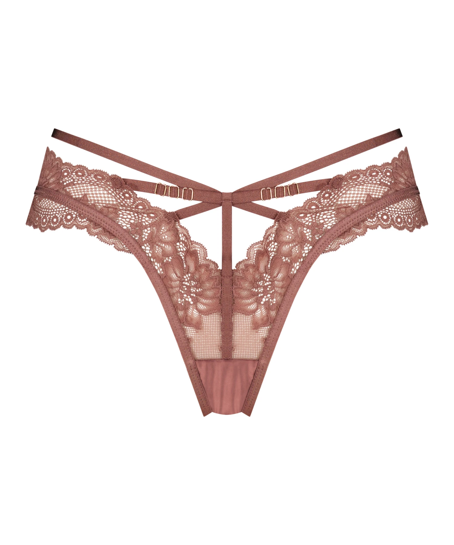 Don’t miss this sexy thong! With an overall lace look in the front and back, with lots of strappy details and gold hardware. Complete the set with the matching bra!