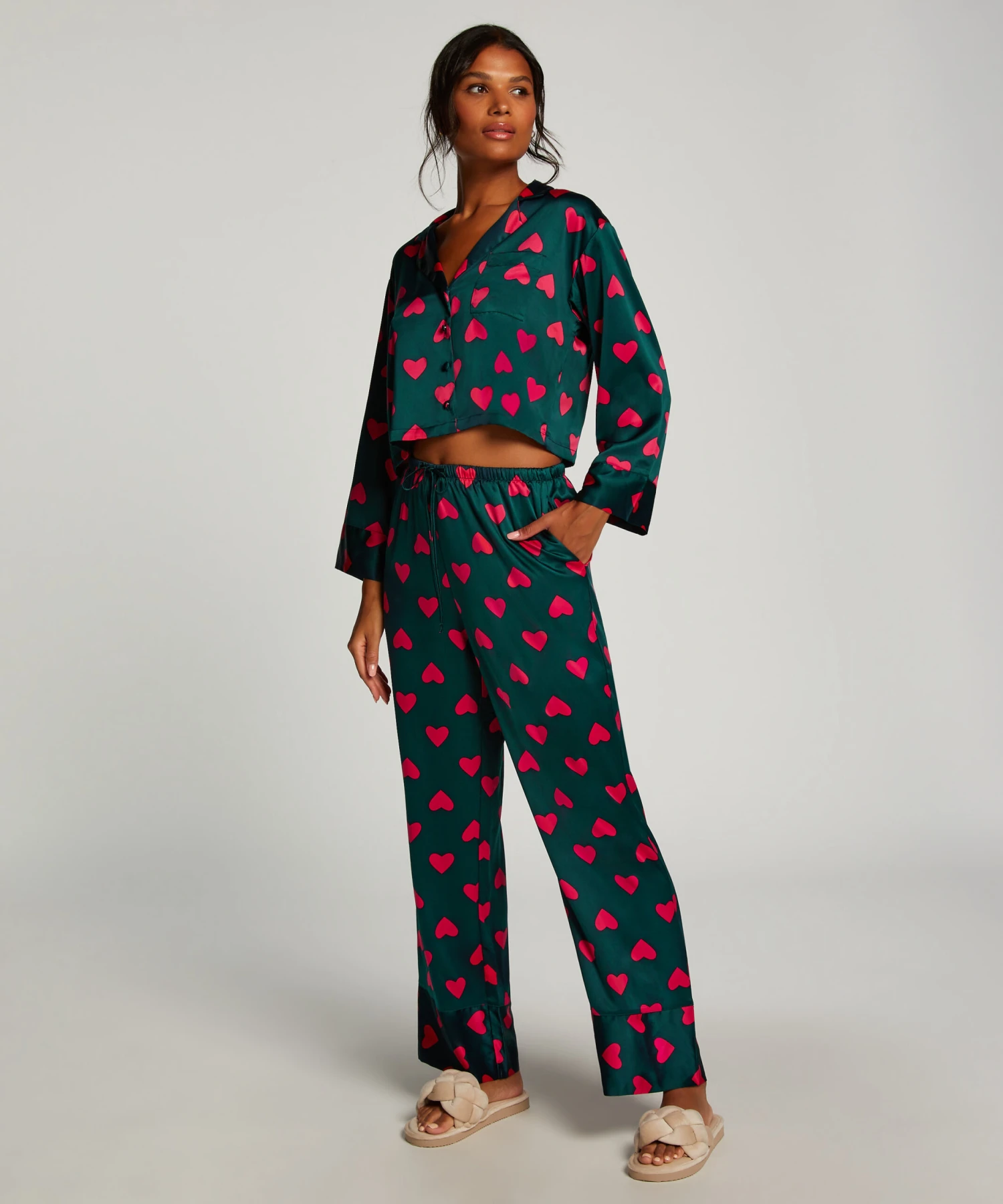 Look great in this jacket! It is made of satin, has long sleeves and a v-neck. Combine with matching items for a complete look!