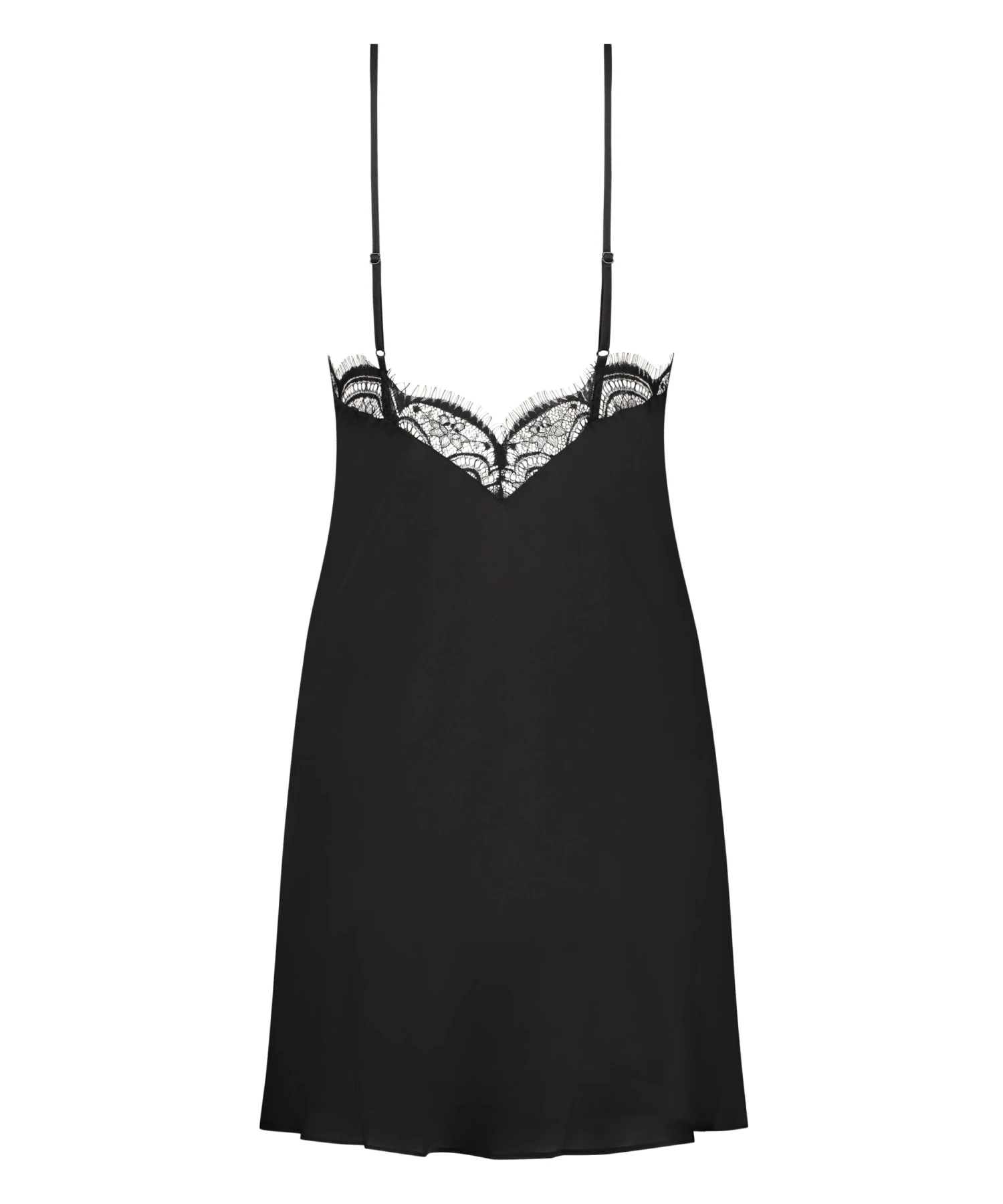 This slip dress is a must-have for your elegant collection! It is made of satin, has a beautiful V-neck and contains beautiful lace details. Combine with a matching kimono for a complete look.