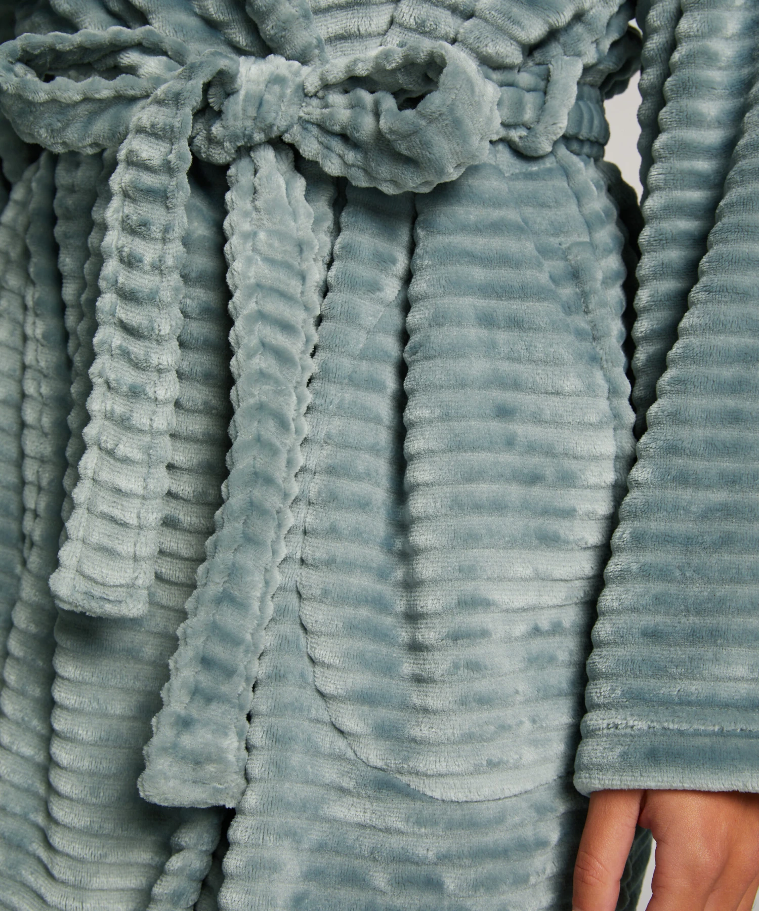 Feel comfortable in this bathrobe! The bathrobe is made of a ribbed fleece material, making it incredibly soft to the touch. Combine with a nightwear set for a complete look!