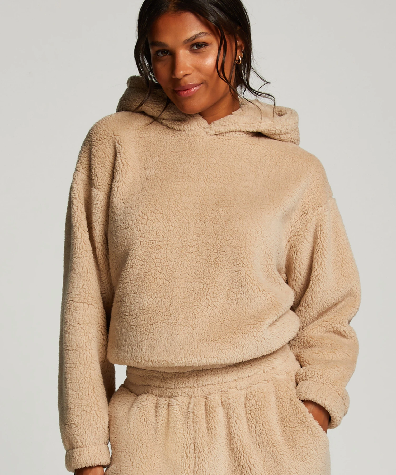 Stay lovely and warm with this soft sweater! It has a hood and has a really soft fleece fabric inside and outside. Combine with the matching joggers for a complete set!