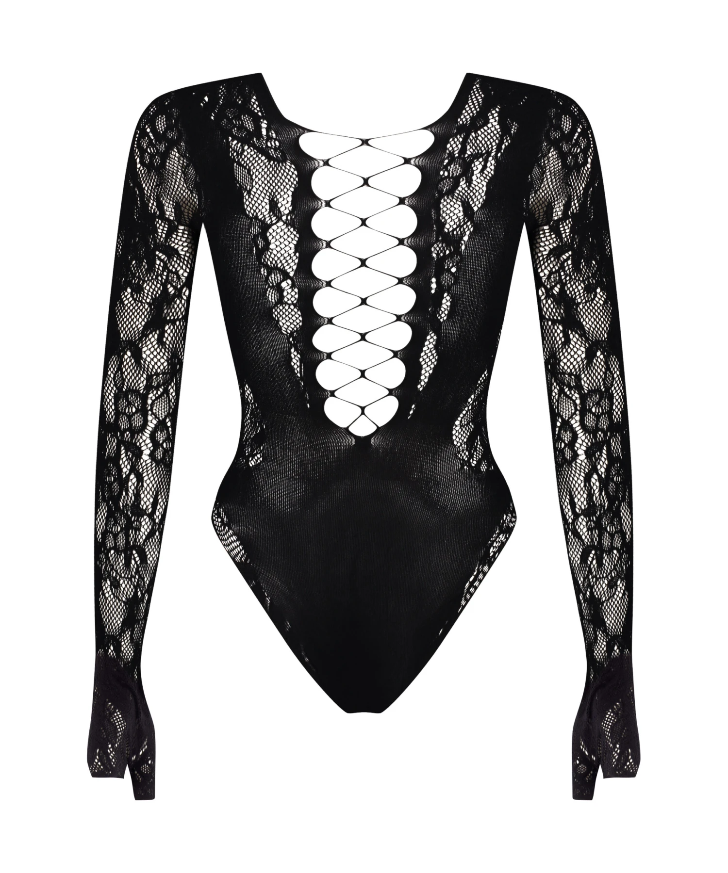 Night out planned? Our Statement Body will help you make an entrance! Wear it over one of our stunning lingerie sets for a sexy, head-turning look. The sassy lace up details on the front and back of the bodysuit features stretchy fabric to sculpt your curves. There’s even a cheeky thong high-leg fit and lace long sleeves with thumbholes that will spice up the look of your outfit!