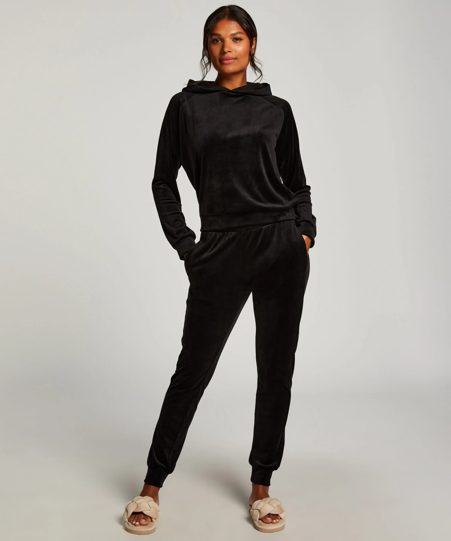 These jogging pants are perfect for a Sunday afternoon! Made from velours material, making them super soft. They are slightly tighter around the lower leg. Combine with the matching top for a complete set! The trousers are 9 centimetres longer than the standard fit and have a tall-fit. This makes them perfect for women taller than 1.75m.