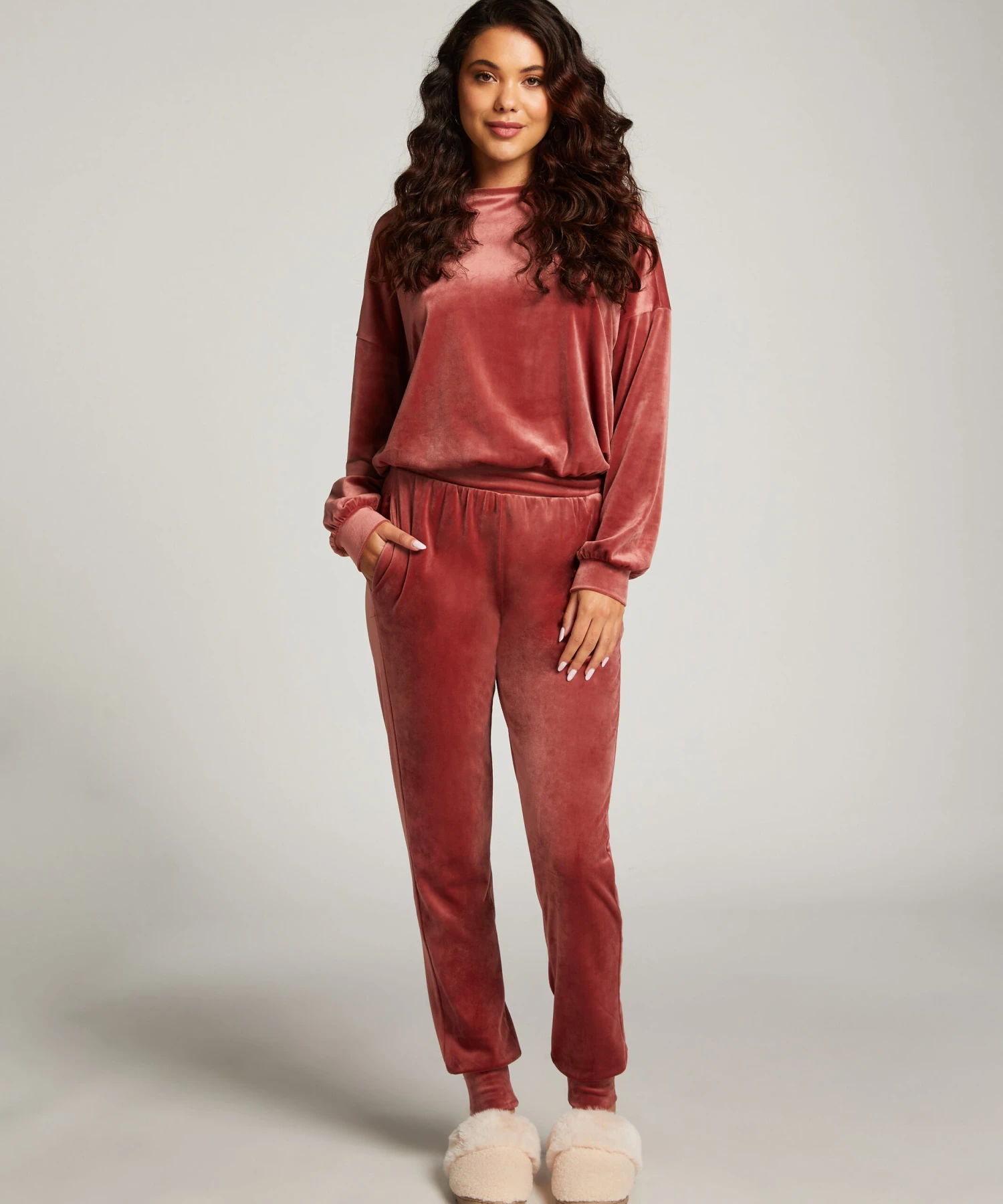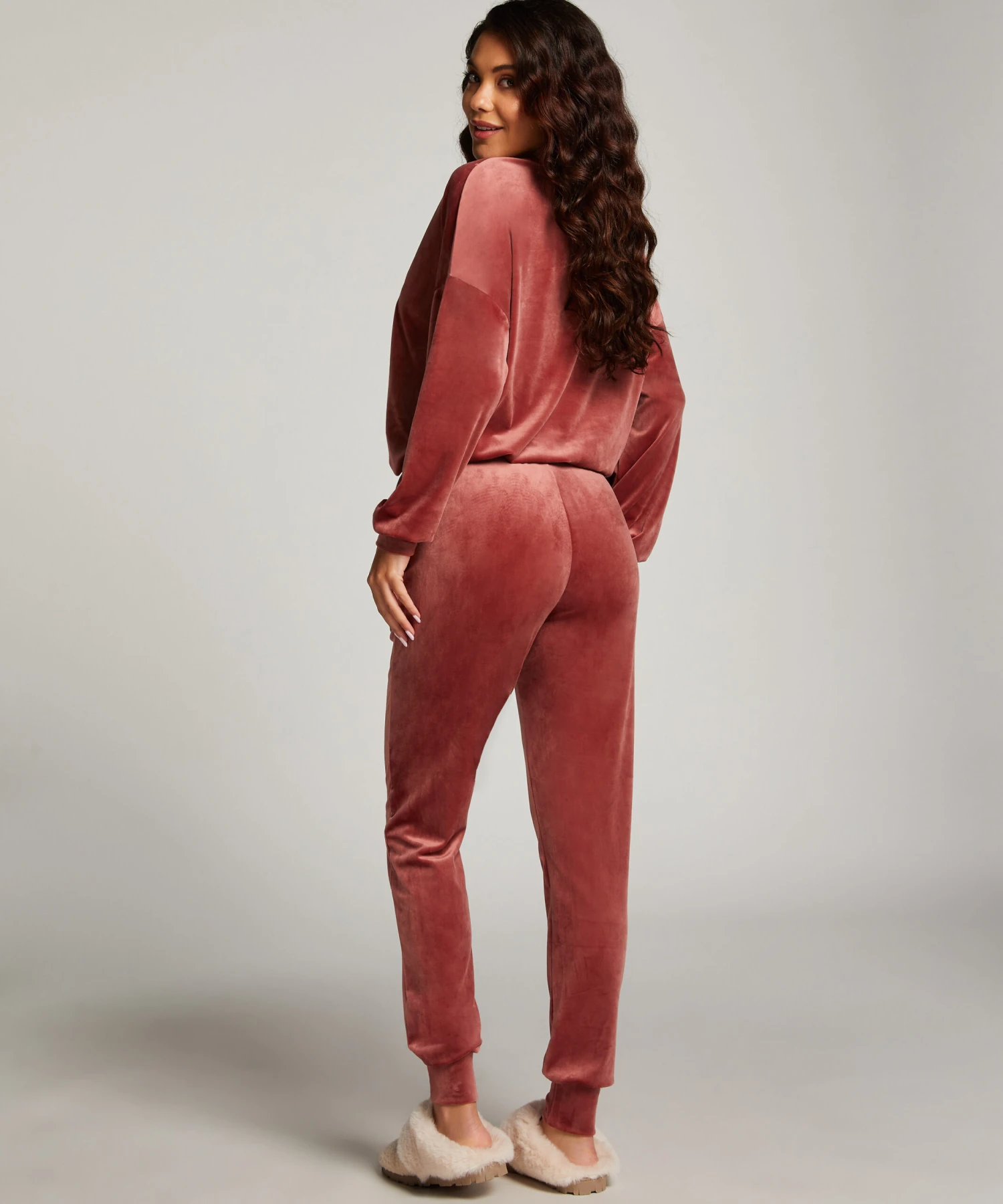 These jogging pants are made from velvet fabric making them very soft and comfortable to wear. The velvet also makes them look very trendy and fashionable. Combine with the matching items for a complete look.