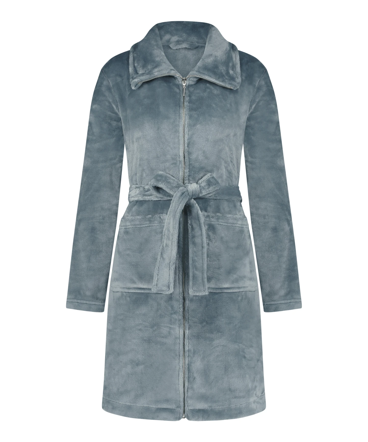 Feel nice and comfy in this bathrobe! The bathrobe is made of a ribbed fleece fabric, and fastens with a zip. Combine with a matching nightwear set for a complete look!