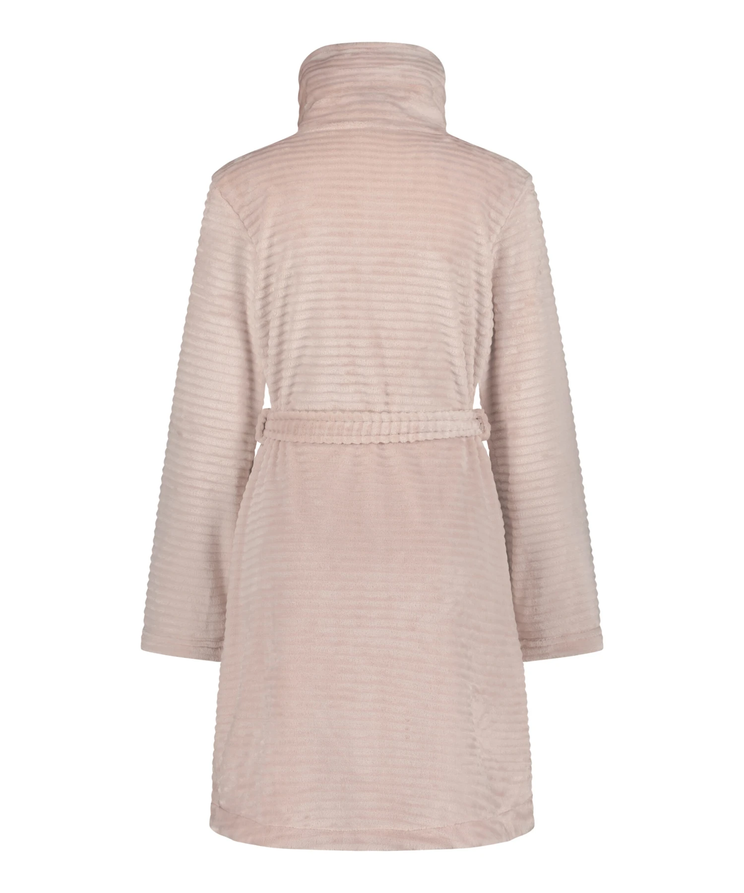 Feel nice and comfy in this bathrobe! The bathrobe is made of a ribbed fleece fabric, and fastens with a zip. Combine with a matching nightwear set for a complete look!